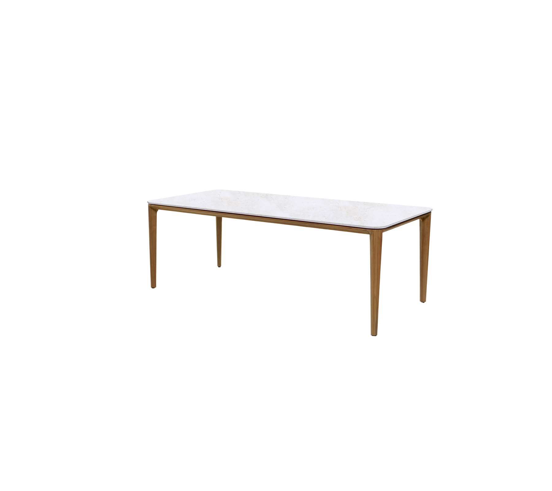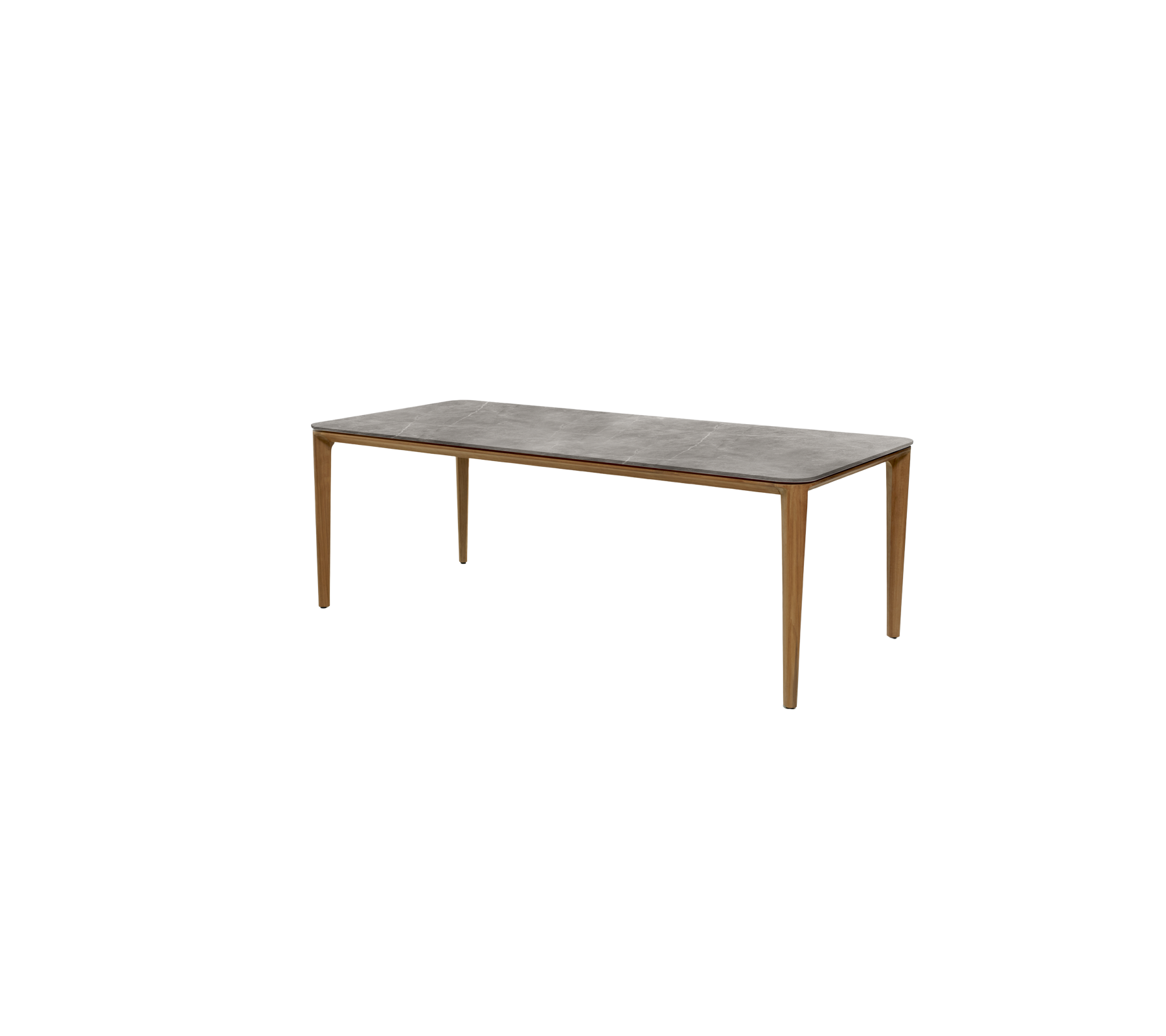 Aspect 210x100 cm ist ein Tisch in strapazierfähigen und eleganten Materialien in absoluter Sonderklasse. Aspect kombiniert die Wärme von Teakholz mit stilvoller und solider Keramik. Entworfen wurde Aspect vom Cane-line Design, mit dem Ziel eine einzigartige Tisch-Serie zu entwerfen, die zur wachsenden Kollektion der High-End Stühle für den Außenbereich passen. Aspect ist mit einem Rahmen aus Cane-line Teakholz, einem soliden Aluminiumkern und einer stilvollen, keramischen Tischplatte hergestellt. Cane-line teak ist genehmigt und bewaldet gemäß dem SVLK Zertifizierungssystem. Der Mix aus Holz und Keramik gibt einen exklusiven und raffinierten Ausdruck, der den Rahmen für einen fantastischen Essbereich im Freien bildet.