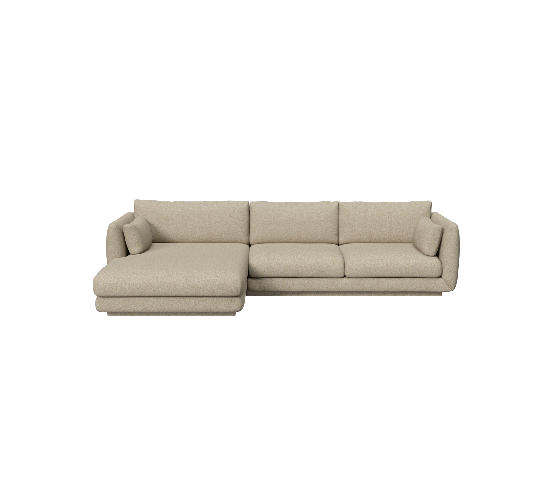 Das Bloom 2-Sitzer-Sofa mit rechtsseitiger Chaiselongue ruht auf einem eleganten Sockel, der dezente Eleganz in moderne Wohnräume bringt. Klare Linien und eine niedrige Formgebung schaffen ein ruhiges, skulpturales Gesamtbild, während die großzügige Sitztiefe und die weiche Polsterung außergewöhnlichen Komfort garantieren. Das Sofa eignet sich sowohl für kleinere Wohnungen als auch für große offene Räume, wo es zum stilvollen Mittelpunkt wird. Entdecken Sie auch das linksseitige Bloom-Chaiselongue-Sofa mit Sockel, das rechtsseitige Modell mit Teakholzbeinen für einen leichteren Look oder andere Bloom-Varianten in verschiedenen Größen, die unterschiedliche ästhetische Ausdrucksformen hinzufügen.