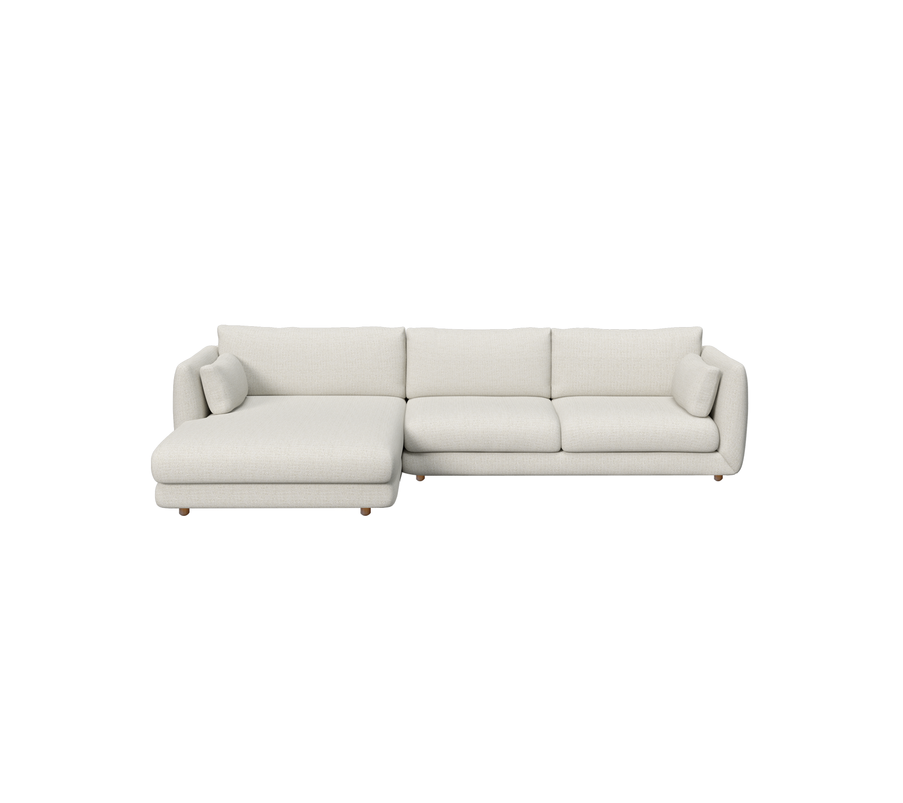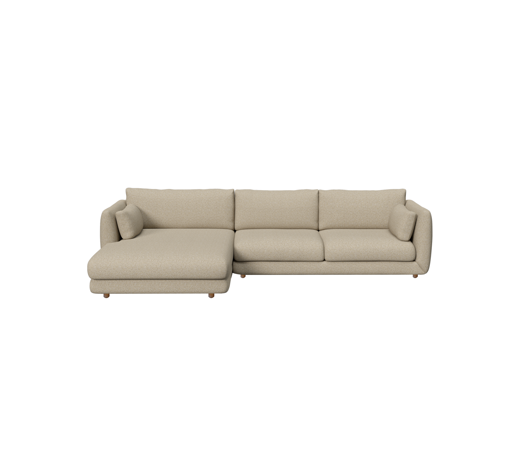 Bloom 2-seater sofa with chaise longue, right and teak legs: