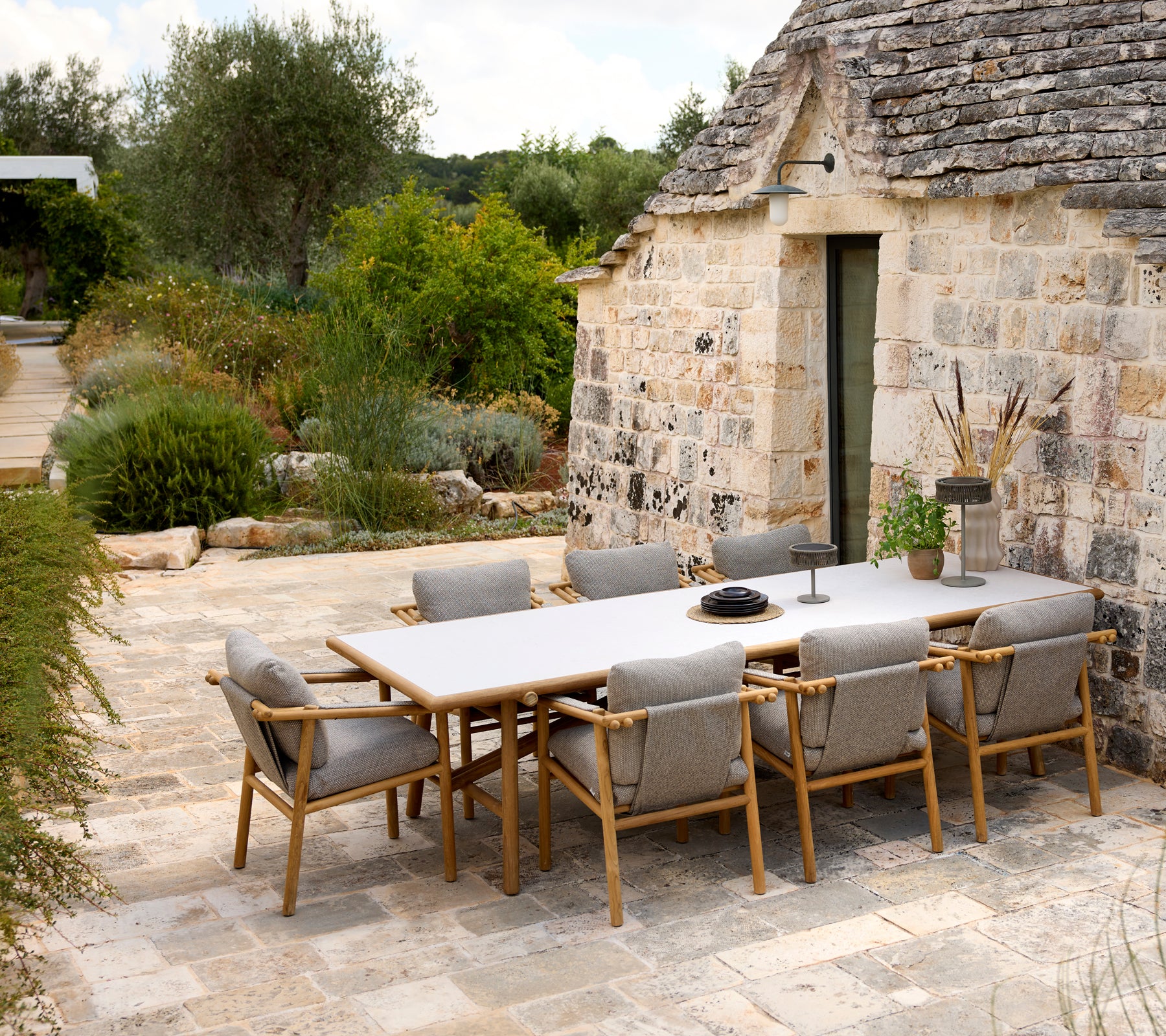 Sticks von Cane-line Design: eine faszinierende Serie mit Konzepten für die Bereiche Lounge, Essen, Küche und Zubehör. Der Name der Serie bildet gleichzeitig die Inspiration für das Design, und Sticks besticht durch einen eleganten und einzigartigen Look. Wählen Sie zwischen einem warmen Teakholz-Finish, das natürlichen Charme ausstrahlt, oder einem modernen Stil mit eleganten Aluminiumstäben. Mit Sticks wird Ihr Außenbereich komplett und erhält eine völlig neue Ästhetik.